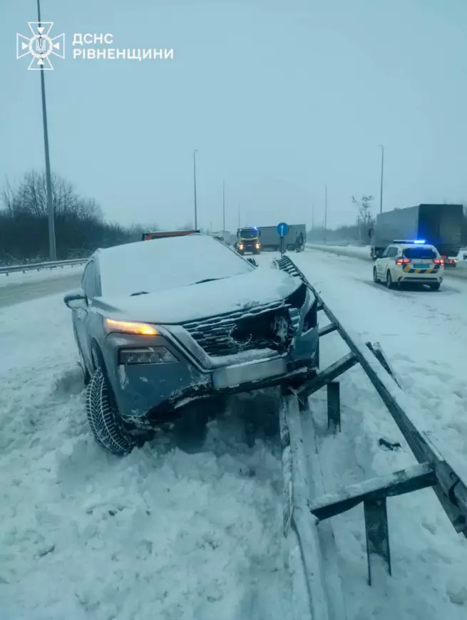 Окрім цього, в тому ж місці, в районі села Баранів, у відбійник врізався легковий автомобіль.