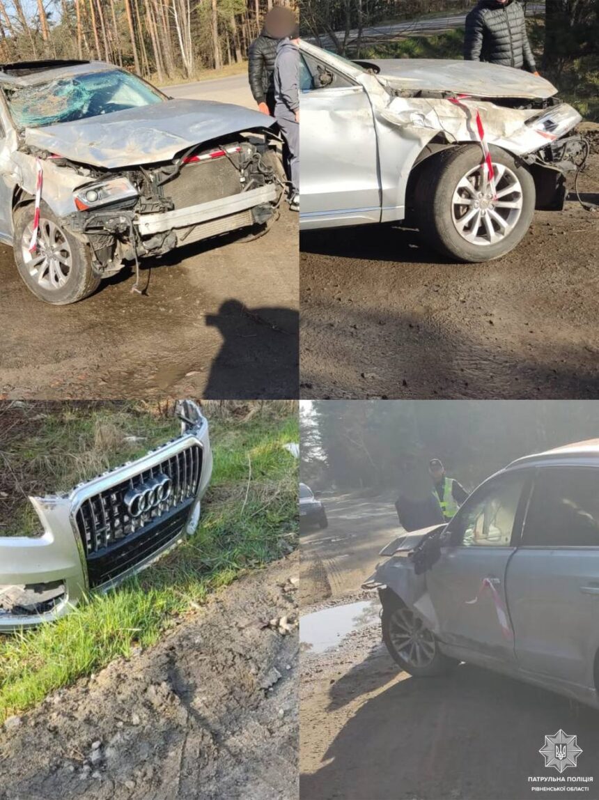 В кюветі на автодорозі Н-25 Городище — Рівне — Старокостянтинів патрульні виявили пошкоджений автомобіль Audi без номерних знаків, ймовірно, після ДТП.