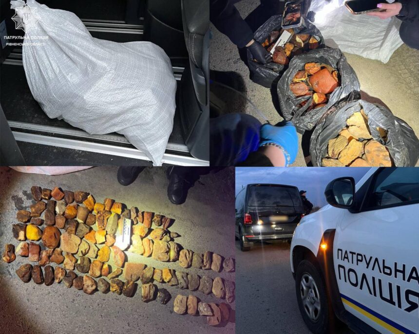 Під час поверхневої перевірки салону автомобіля патрульні виявили мішок із камінням. Налічили 93 бурштинових камені. Жодних документів на каміння водій надати не зміг.