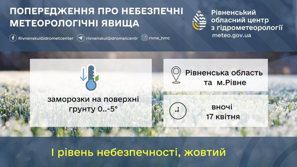 вночі +1..+3°, на поверхні грунту заморозки 0..-2; вдень +12..+14°.