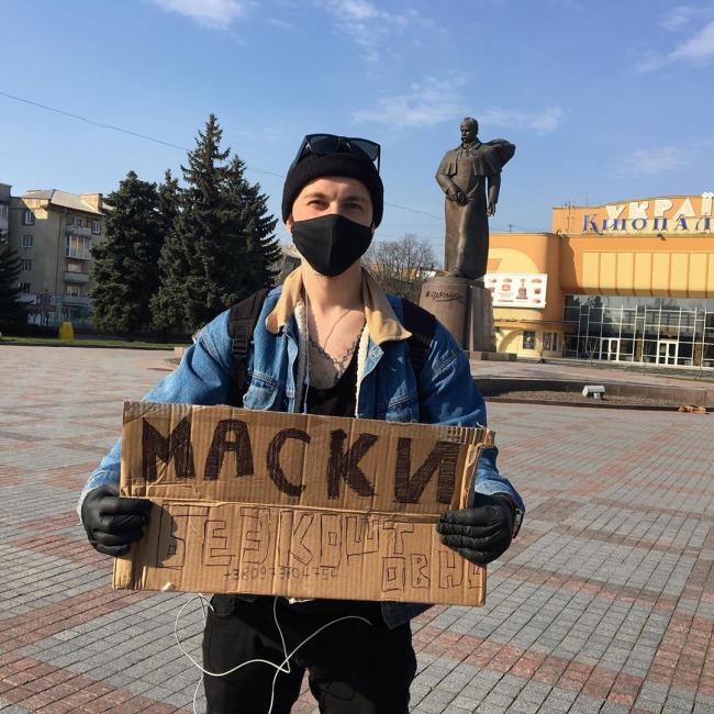 «Шановні люди, носіть, будь ласка, маски, адже ми можемо не хворіти, а просто бути носіям», – звертався до всіх учасник акції.