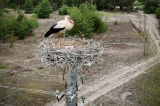 Електромонтери Зарічненської дільниці ПрАТ «Рівнеобленерго» встановлють спеціальні контрукції.