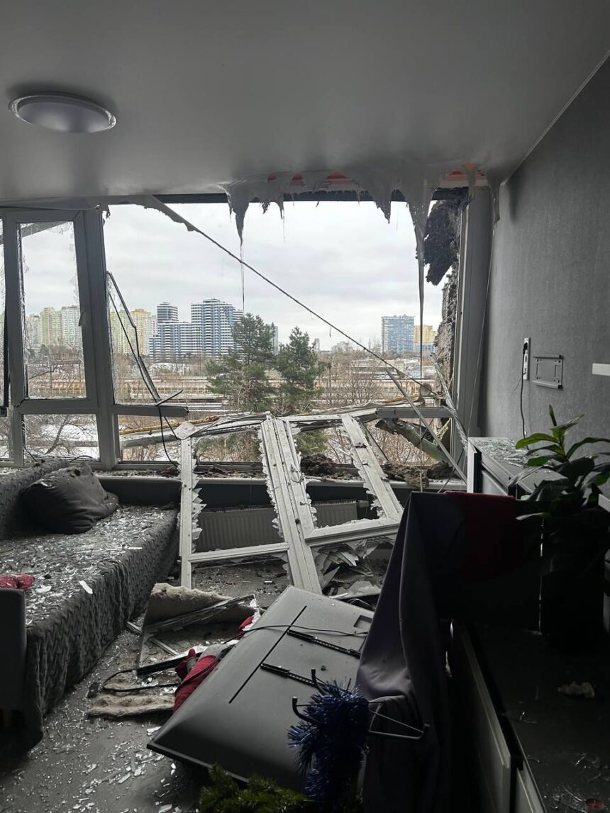 Навколо на вулиці розкидані уламки та вибиті шибки...