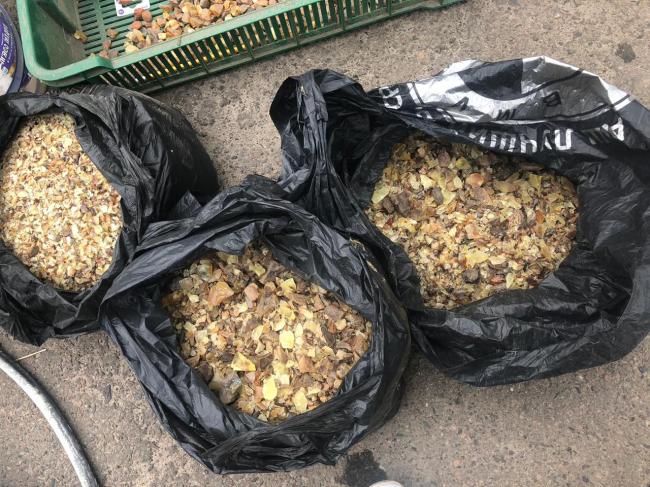 У приватних помешканнях виявлено та вилучено 73 кг каміння бурштину вартістю близько 700 тис. грн. Прокуратурою області здійснюється процесуальне керівництва у кримінальному провадження за фактами вчинення опору та погроз насильством працівникам правоохоронного органу, незаконного видобування корисних копалин - бурштину, а також незаконного поводження зі зброєю.