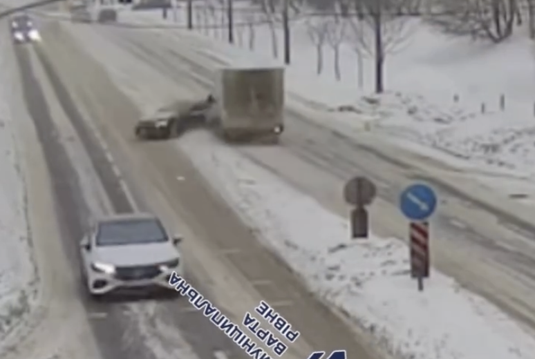 На кадрах видно, як у різних мікрорайонах міста зіштовхуються автомобілі. Переважно ДТП відбувалися на виїздах з другорядної дороги на головну. Водіїв закликали бути обережними.