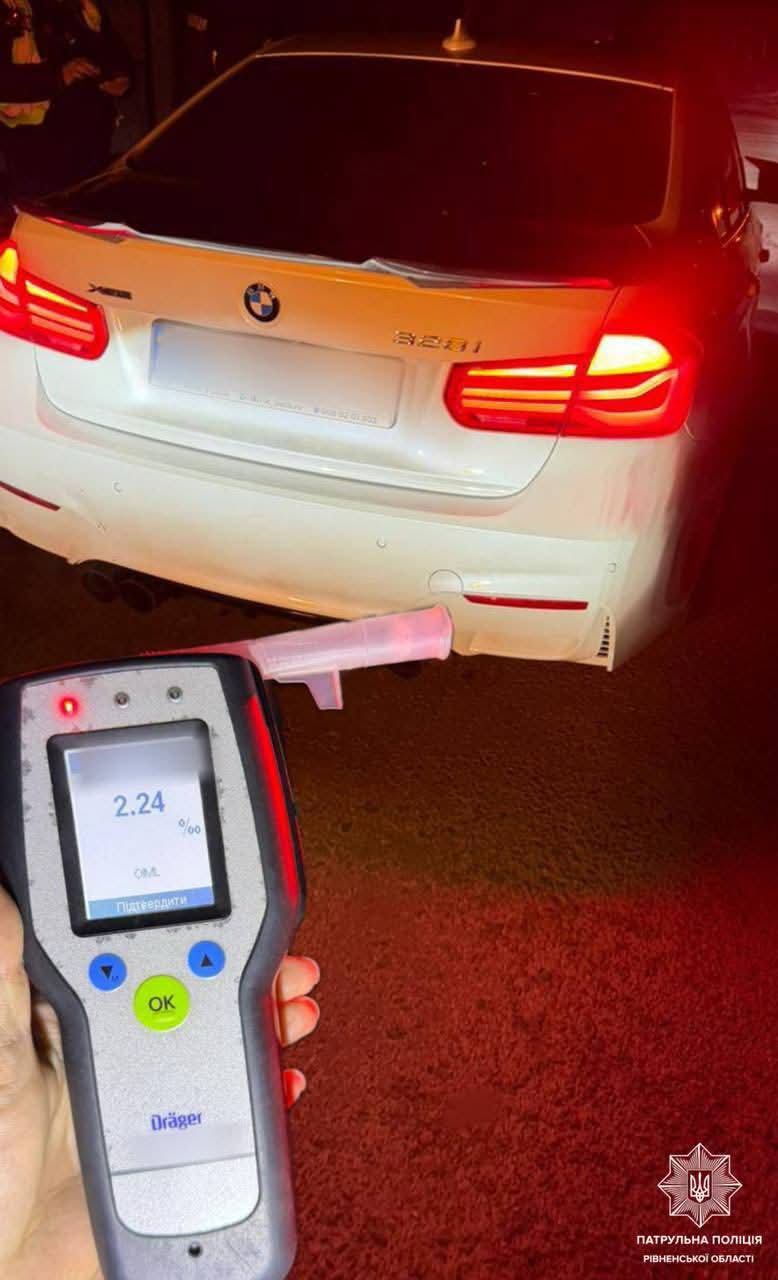Поліцейські запропонували йому пройти огляд на визначення стану спʼяніння за допомогою алкотестера. Результат огляду — 2,24 % проміле. Від проходження огляду у медзакладі чоловік відмовився.