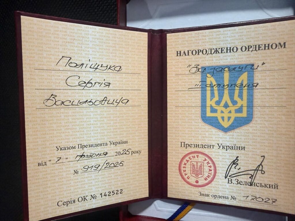 Високу державну відзнаку вручив президент України Володимир Зеленський за вагомий особистий внесок у державне будівництво, розвиток місцевого самоврядування, самовіддане виконання службового обов’язку в умовах воєнного стану та вірність Українському народові.