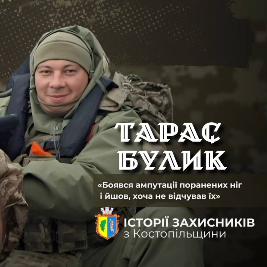 Баскетболіст костопільського клубу «Меридіан» Тарас Булик навчався на будівельника. Скрізь, де вчився, грав у баскетбол. Працював у міліції, після реорганізації та переатестації – поліцейським, звідки у 2023-му пішов у воєнізований поліцейський підрозділ особливого призначення «Сафарі». Вижив у кривавих штурмах в районі Кліщіївки, Андріївки, Курдюмівки на Донеччині. Після поранення звільнився з поліції, уклав контракт з ЗСУ, пройшов навчання – і знову на фронт. Досвід, знання та холодний розум допомагали реалізовувати бойові операції без втрат або з найменшими втратами. За мить від смерті був багато разів, кожного разу вдавалося вийти живим. На війні Тарас Булик отримав військове офіцерське звання, після кількох поранень продовжує службу.