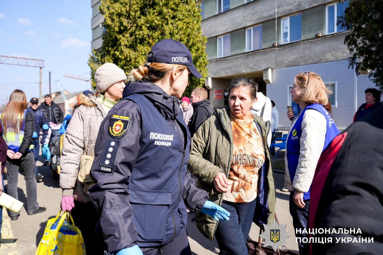 Евакуйованих зустрічали поліцейські, медики, рятувальники та представники влади й Центру Життєстійкості. Вони разом допомагали переселенцям вийти з потягу, годували, допомагали завантажити речі у транспорт та консультували під час реєстрації.