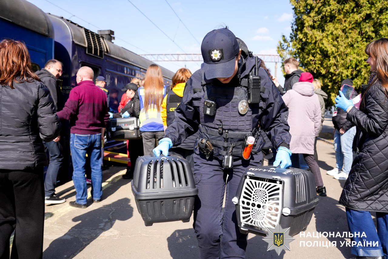 – Усе своє життя вони склали у декілька торбин та вирушили у невідомість. Не забули і про чотирилапих членів родин. Так, 54-річна Лілія та її чоловік Олександр, евакуйовуючись з міста Миколаївка, узяли з собою 4 коти, які мешкають з ними вже 4 роки. Муркотливого друга не залишила і родина 52-річної Вікторії, які рятувалися з-під обстрілів Дружківки, – розповідають в обласній поліції.
