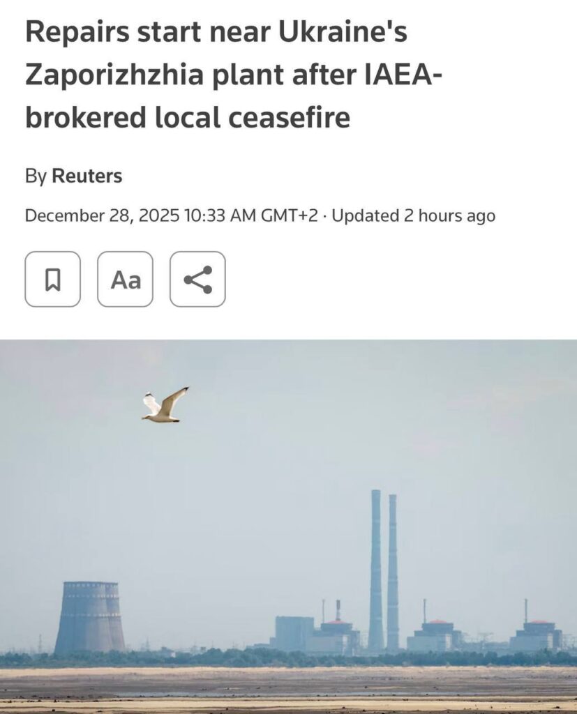 – Директор МАГАТЕ Рафаель Гроссі заявив, що домовленості про паузу в бойових діях досягнуто, щоб відремонтувати лінії електропередач.