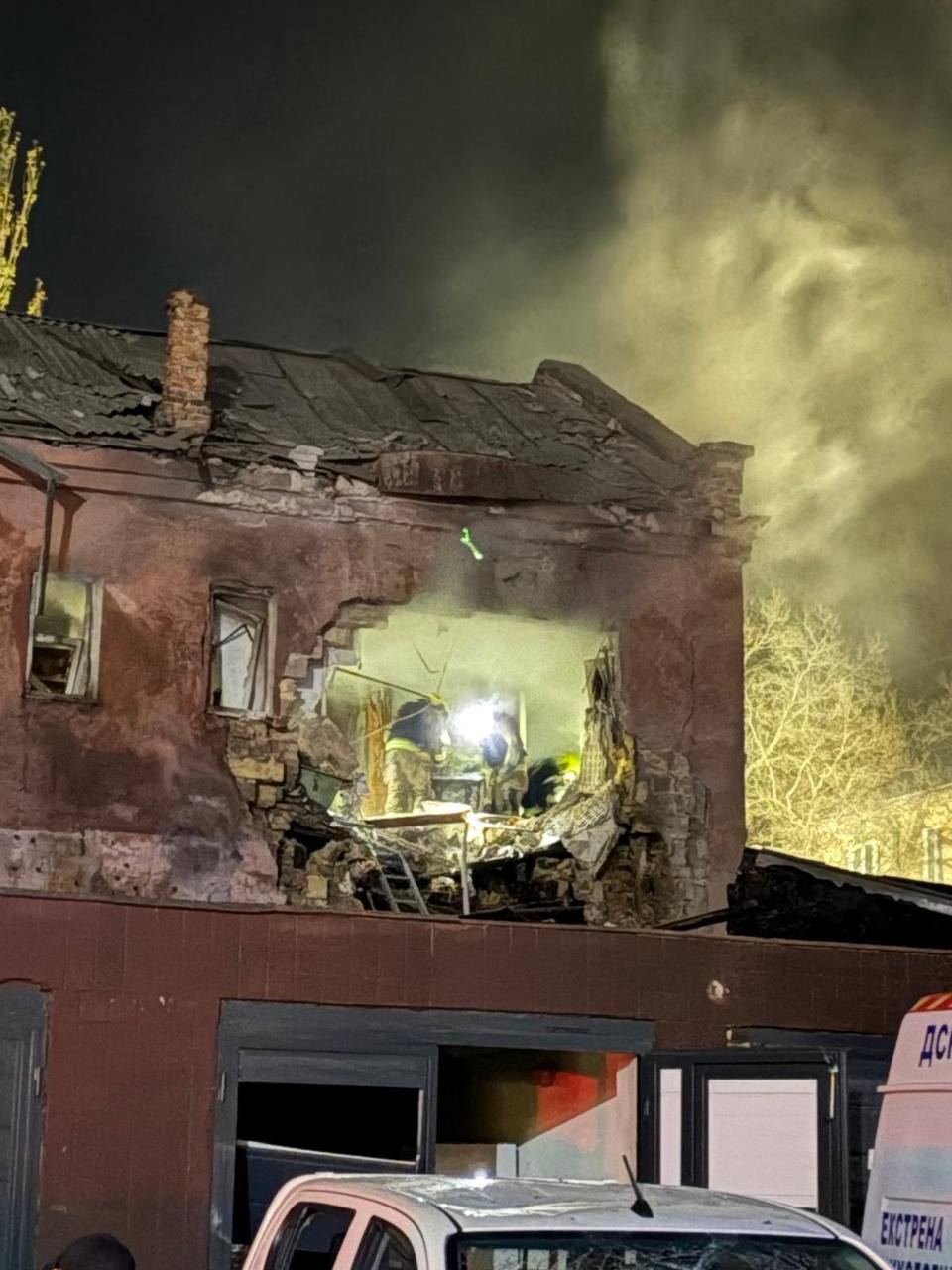 У кількох сусідніх будинках вибито скління, пошкоджено припарковані поруч автомобілі.