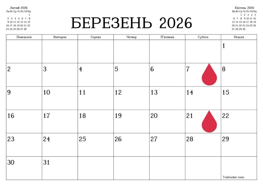 У березні донорів прийматимуть двічі по суботах — 7-го та 21-го числа. Заклад працюватиме за звичним графіком: з 8:00 до 13:30. Медики наголошують, що потрібні донори з усіма групами крові.