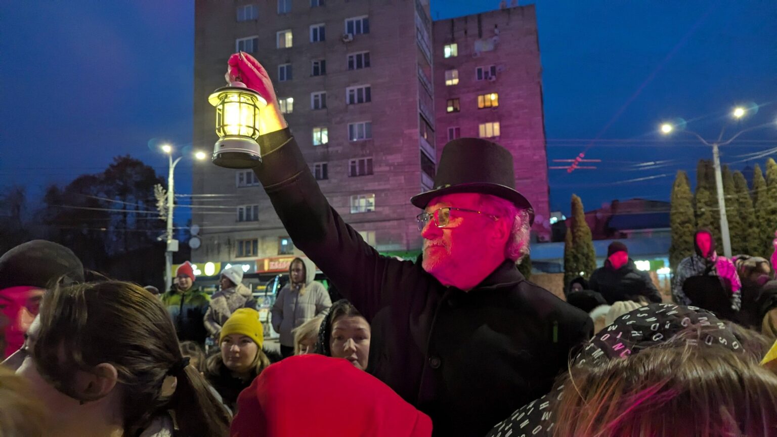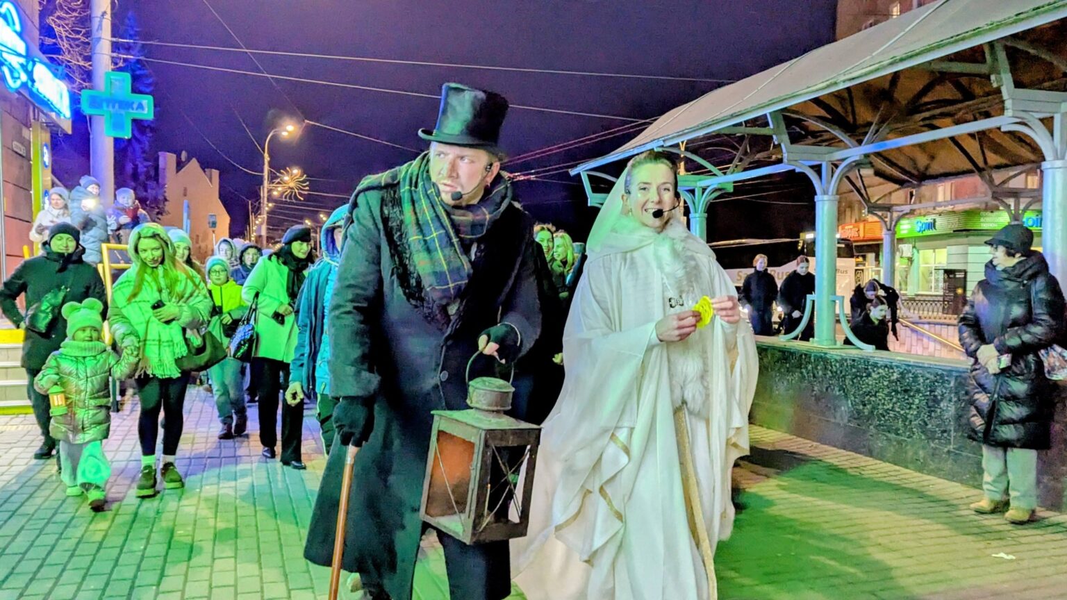 Після цього хода разом із Скруджем та рівнянами вирушила до драмтеатру, щоб запалити вогні на ялинці.