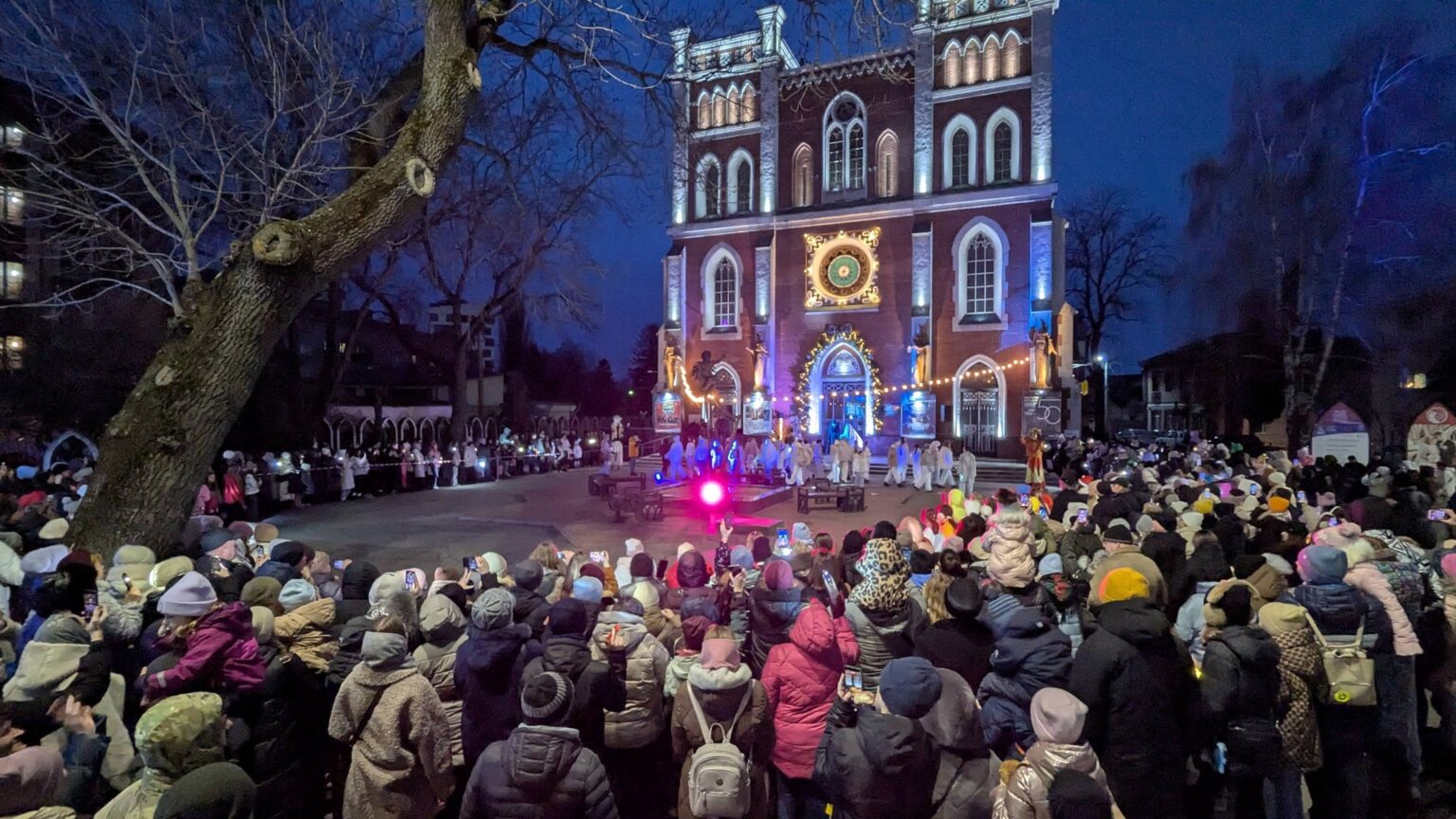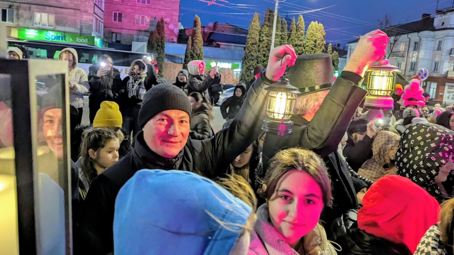 Це дійство зібрало більше сотні дорослих та дітей, які продовжують прибувати до драмтеатру.