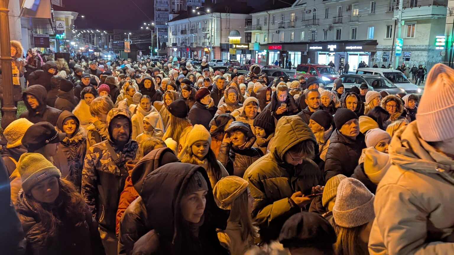 Людей було більше сотні. Оскільки на Театральній площі не вистачало місця, то люди видиралися навіть на клумби.
