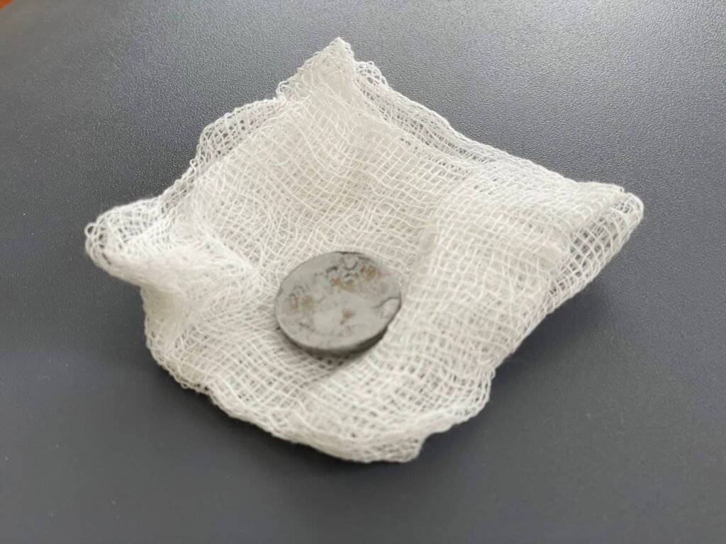 Під час ендоскопії лікарі виявили круглу літієву батарейку діаметром 2,5 см, яка щільно застрягла у стравоході та вже спричинила серйозне ушкодження тканин.