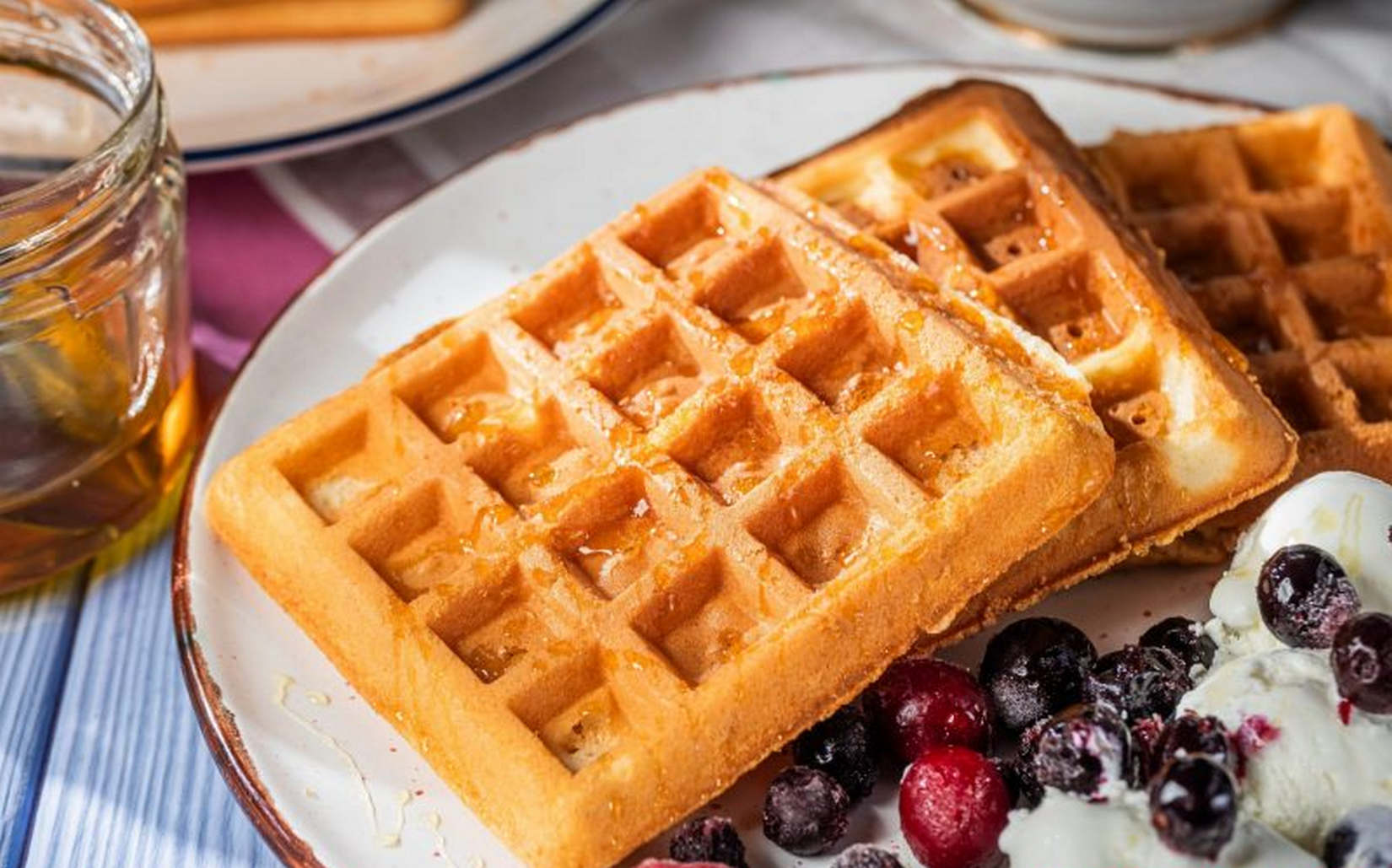 Вафлі можна подавати, наприклад, з кулькою пломбіру, ягодами та медом. А можете подати страву з посипкою із цукрової пудри, карамелізованими яблуками, розтопленим шоколадом та бананами, джемом чи варенням, карамеллю та горіхами.