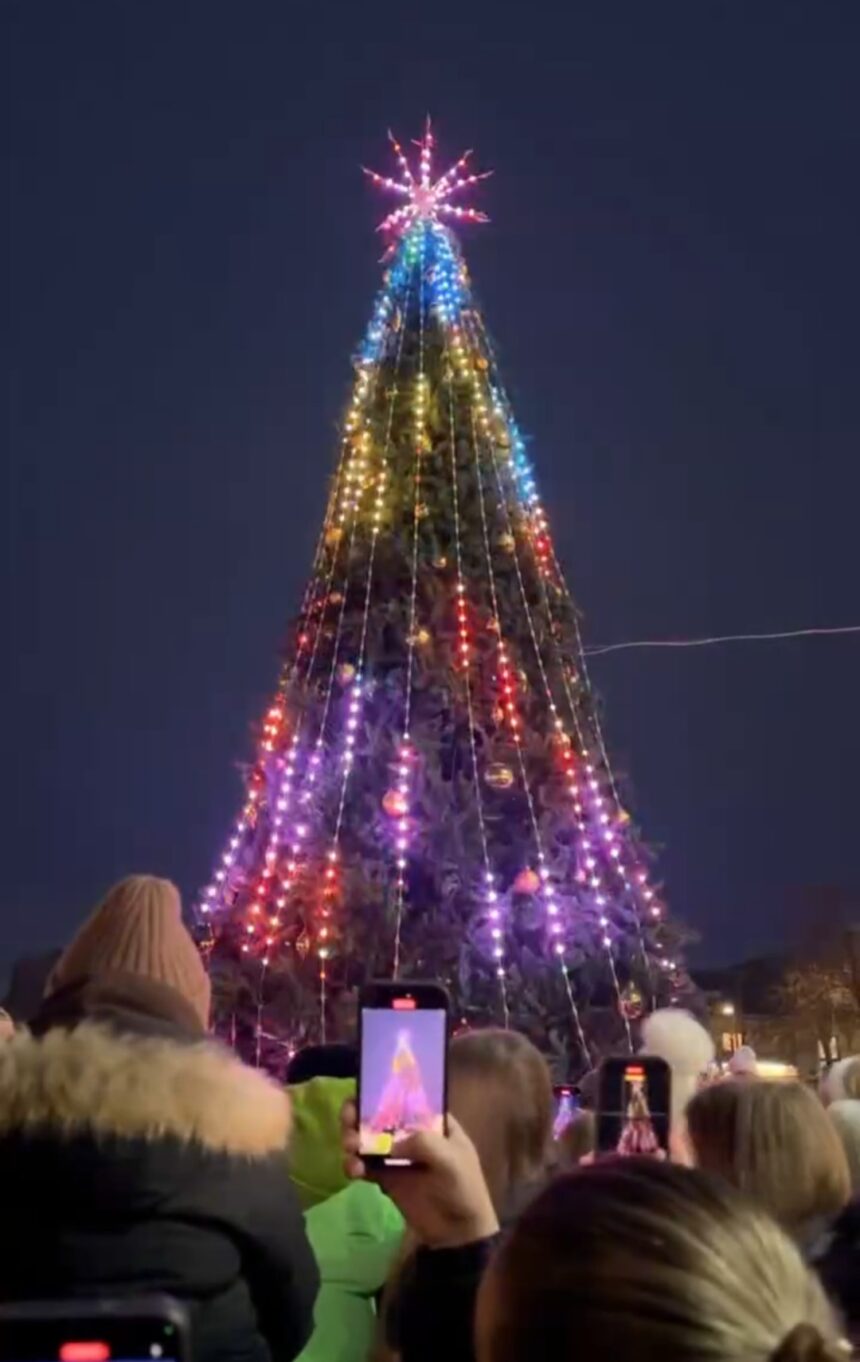 А от велика штучна ялинка біля ТРЦ “Екватор” на вулиці Кулика і Гудачека вже сяє вогнями, як і святкова ілюмінація всередині.